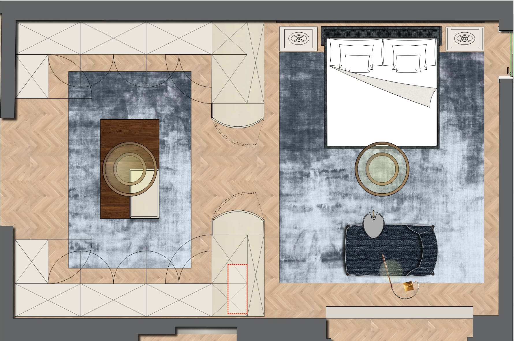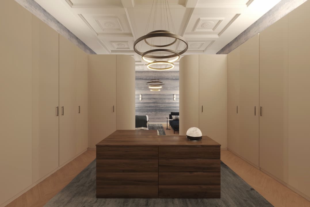Das gesamte Interior ist auf höchste Qualität und individuelles Design ausgerichtet: Von den edlen Texturen der Stoffe bis zu den maßgefertigten Einbauten wurde jedes Detail sorgfältig geplant. Dieses Projekt steht exemplarisch für Luxus Schlafzimmer Interior Design in Berlin, bei dem Ästhetik, Komfort und Funktion in perfekter Balance stehen.